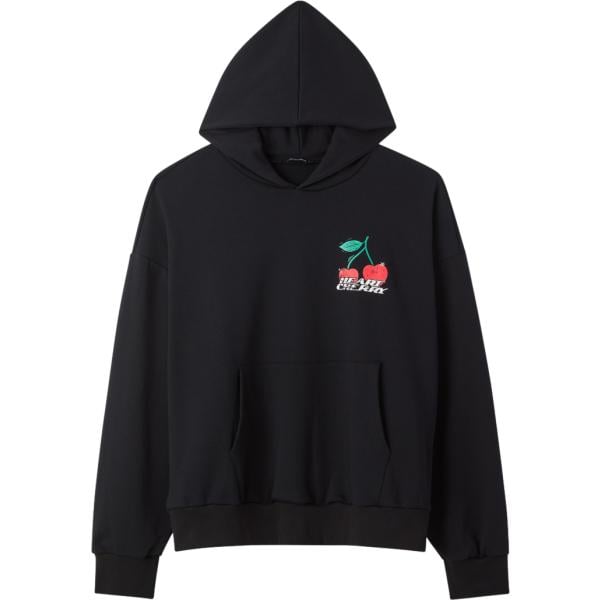 Felpa con cappuccio da uomo in nero pece collo con cappuccio a maniche lunghe
