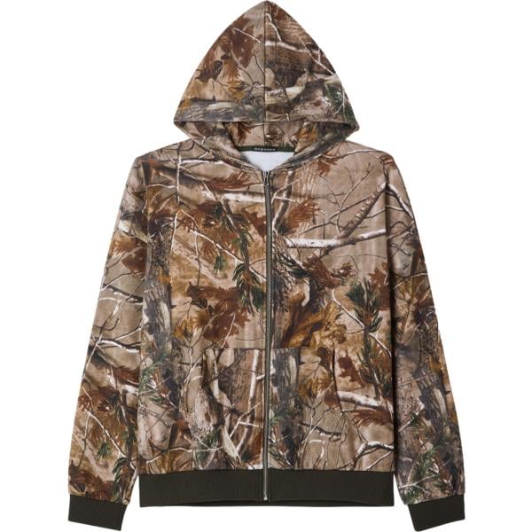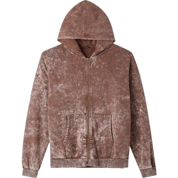 Felpa con cappuccio da uomo in marrone chiaro con stampe collo con cappuccio con zip in cotone