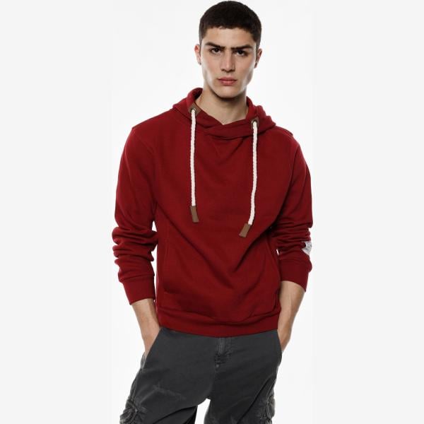 Felpa con cappuccio da uomo in bordeaux collo con cappuccio