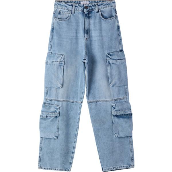 Jeans da uomo con vestibilità baggy, caratterizzati da una fascia a vita doppia che offre un tocco distintivo al design. Il modello presenta una chiusura con bottoni e zip, insieme a tasche anteriori e posteriori per una maggiore funzionalità. La texture del tessuto è lavorata in modo da offrire comfort e resistenza, rendendoli ideali per un uso quotidiano e versatile. La parte inferiore dei jeans è rifinita per un aspetto casual ma curato.