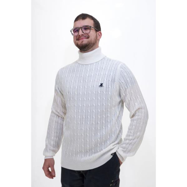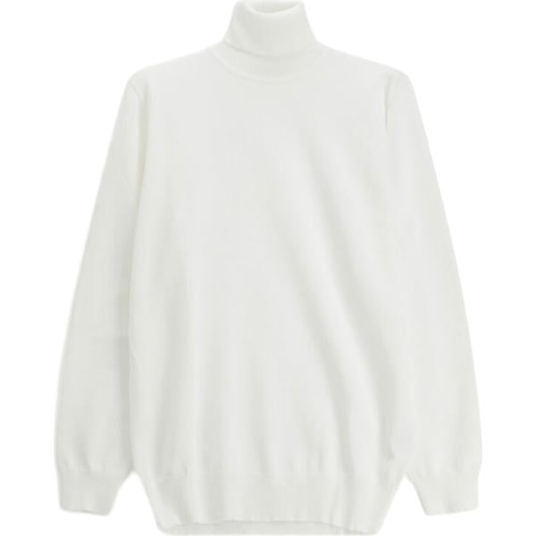 Pullover da uomo in bianco neve lavorato a maglia collo a dolcevita in viscosa
