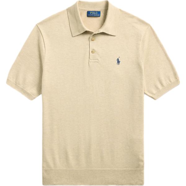 Maglione da uomo in beige sabbia collo a polo in cotone