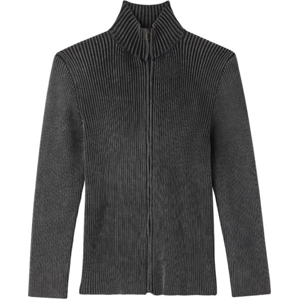 Cardigan da uomo in grigio scuro collo alto a maniche lunghe con zip in cotone