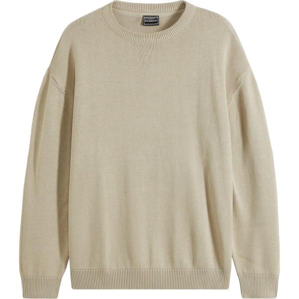 Pantaloni chino da uomo in beige sabbia Polo Ralph Lauren, Sneakers da uomo in bianco avorio a righe effetto scamosciato in pelle Polo Sport, Maglione da uomo in beige sabbia collo a polo in lana Rlx, Giacca soprabito da uomo in marrone scuro monopetto in lana Doppelganger.