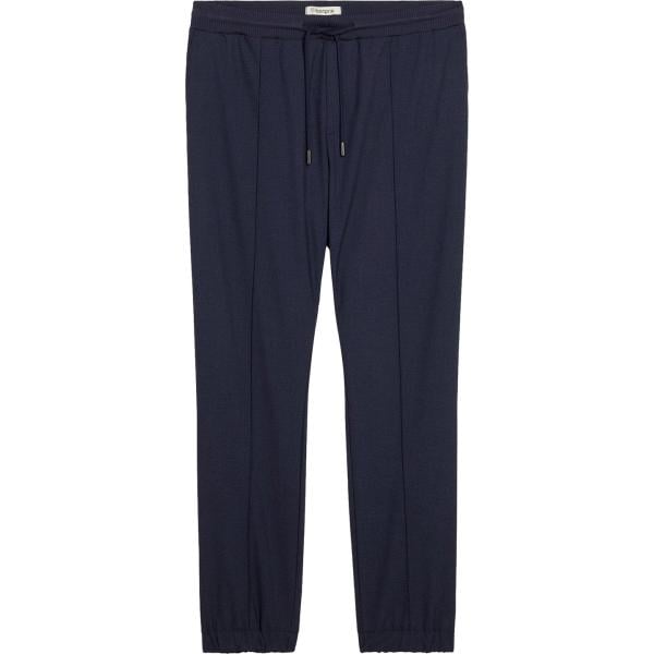 Scarpe stringate da uomo in blu scuro in pelle Bugatti, Camicia da uomo in bianco neve collo classico in cotone Doppelganger, Giacca soprabito da uomo in blu scuro Imperial, Pantaloni da uomo in blu scuro Imperial.