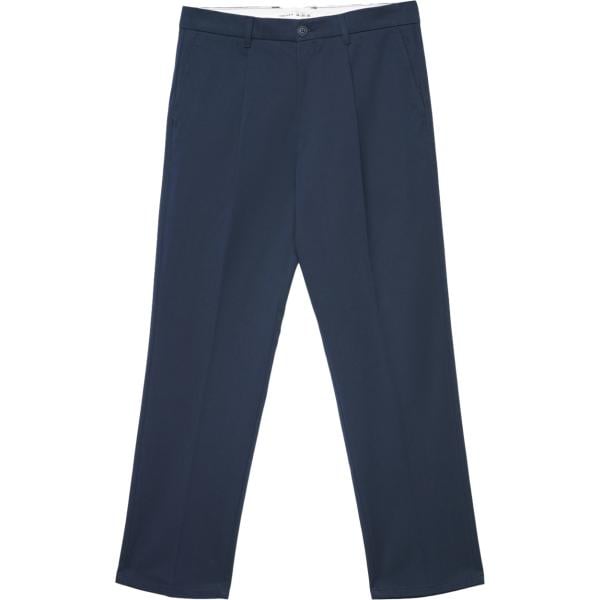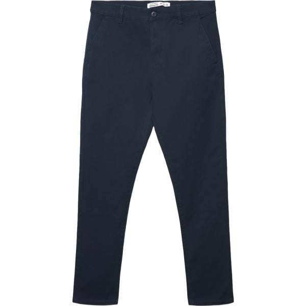 Pantaloni chino da uomo in blu scuro lungo a vita media con zip in cotone