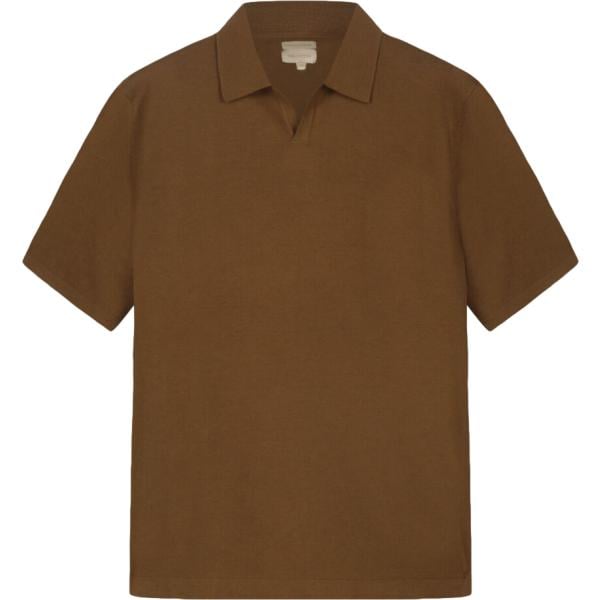 Polo da uomo in marrone scuro lavorato a maglia collo a polo a maniche corte in cotone