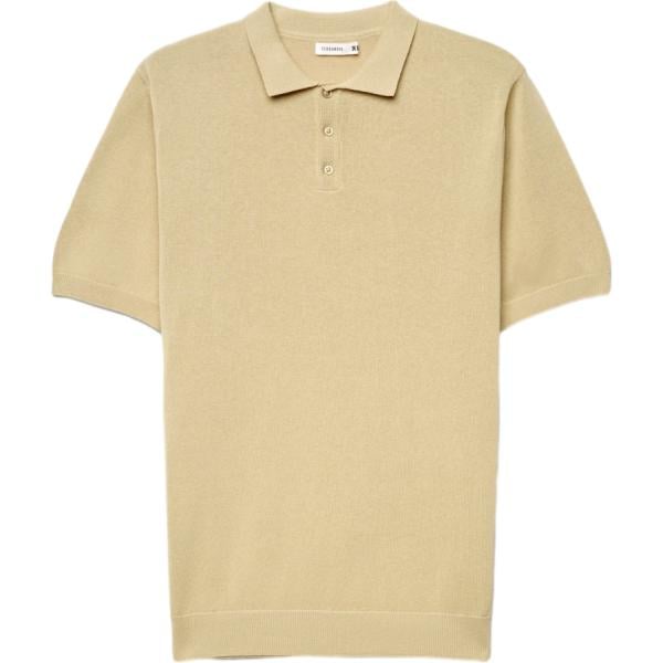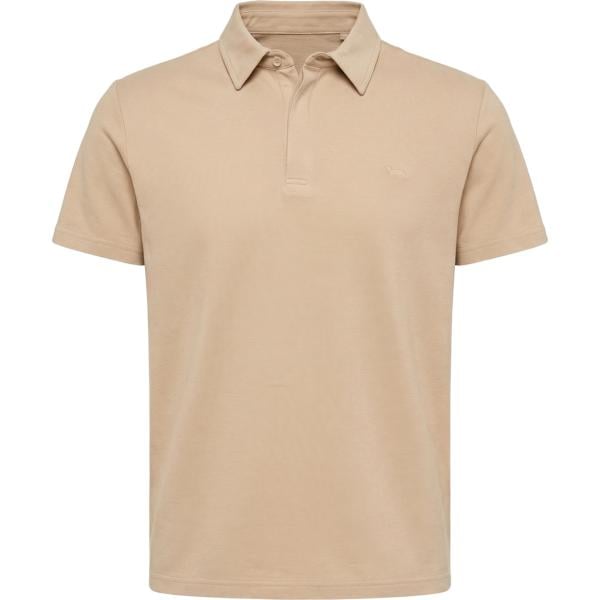 Polo da uomo in beige sabbia collo coreana a maniche corte con bottoni in cotone