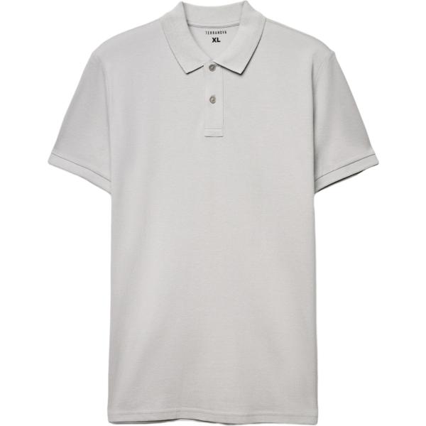 Il grigio é il colore dominante di questa proposta che vede una polo e un paio di bermuda abbinati ad un paio di sneakers, ad un cappellino e ad un paio di occhiali da sole.