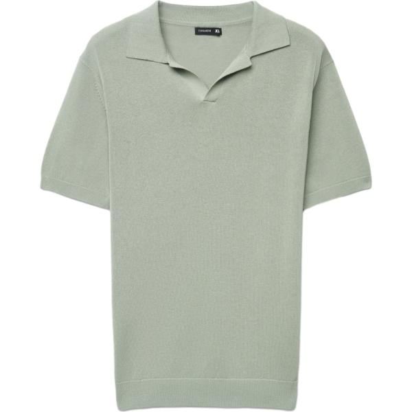 Polo da uomo in beige sabbia lavorato a maglia a maniche corte in cotone
