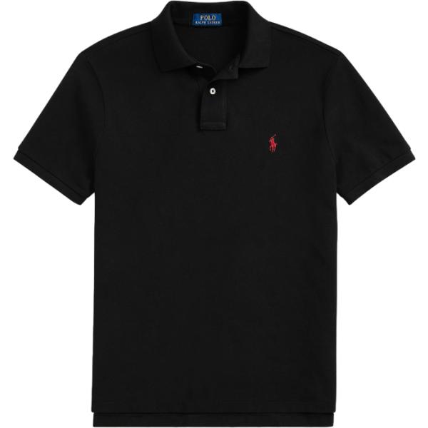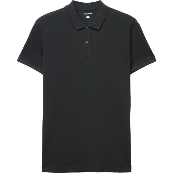 Polo da uomo in nero pece con stampe collo classico a maniche corte con bottoni