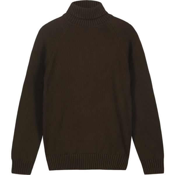 Giacca soprabito da uomo in marrone chiaro effetto scamosciato girocollo a maniche lunghe con zip Terranova, Jeans da uomo in verde oliva in denim Imperial, Sneakers alte da uomo in marrone scuro bonprix, Pullover da uomo in bianco avorio collo a dolcevita in cotone Doppelganger.