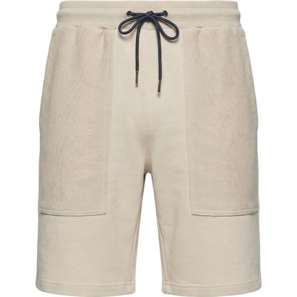 Pantaloni corti da uomo longuette in beige sabbia con coulisse in plush