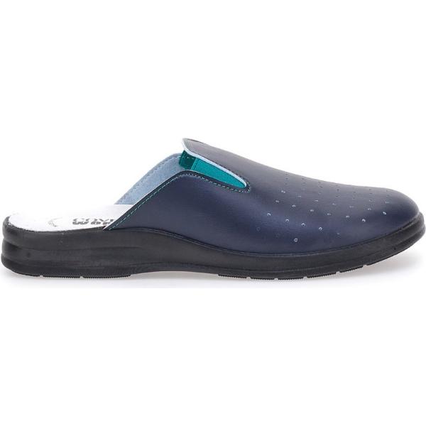 Sandali da uomo in blu scuro con zoccolo a punta tonda in pelle