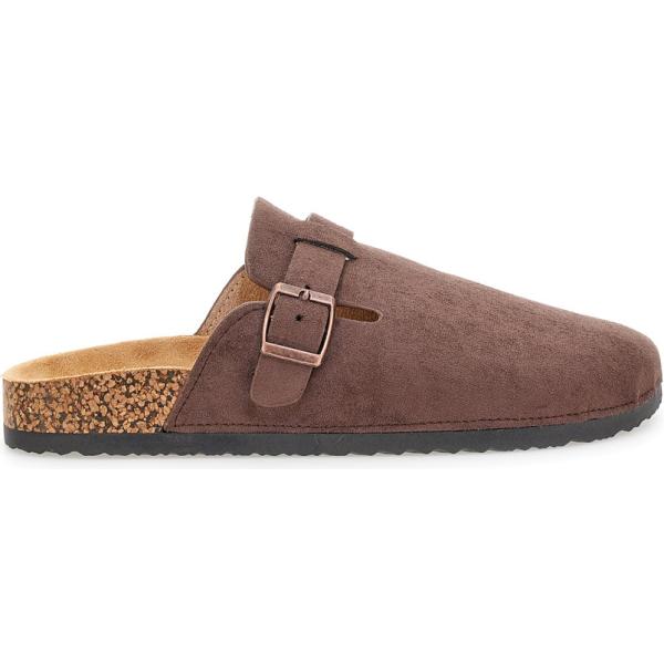 Sandali da uomo in marrone scuro con zoccolo con fibbia