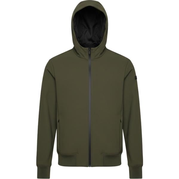 Giacca sportiva da uomo in verde oliva lavorato a maglia collo con cappuccio con zip in poliestere