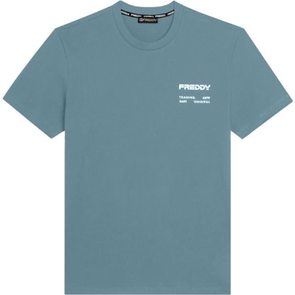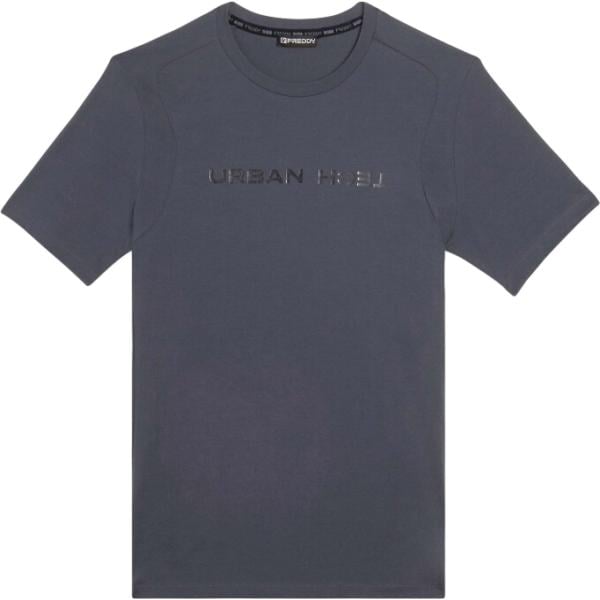 T-shirt sportiva da uomo in grigio scuro con stampe effetto lucido a maniche corte