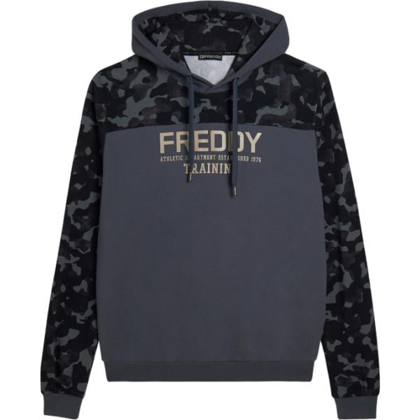 Felpa con cappuccio da uomo in blu scuro military collo con cappuccio con coulisse in plush