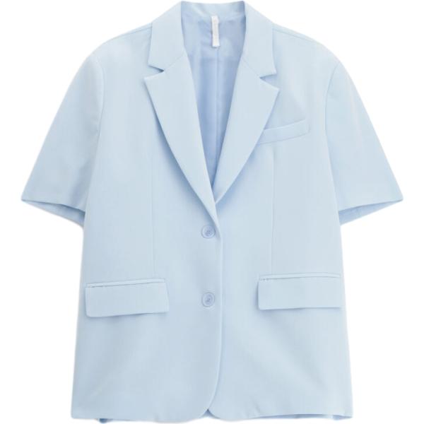 Giacca soprabito da uomo in azzurro monopetto a maniche corte