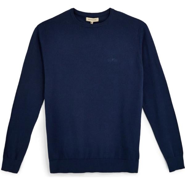 Maglione da uomo in blu scuro con stampe girocollo in acrilico