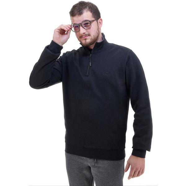 Felpa da uomo in nero pece con stampe girocollo in cotone