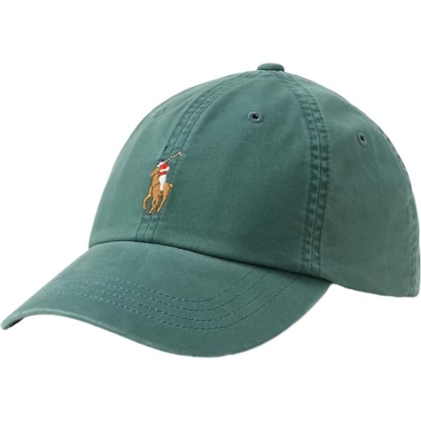 Cappello con visiera da uomo in verde scuro con fibbia in pelle