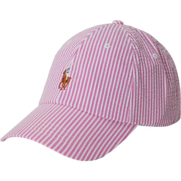 Cappello con visiera da uomo in rosa scuro a righe