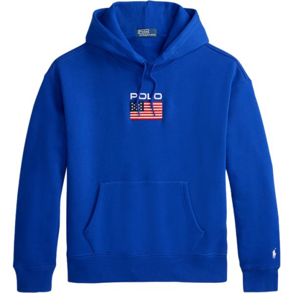 Felpa con cappuccio da uomo in blu medio con stampe collo con cappuccio in pile