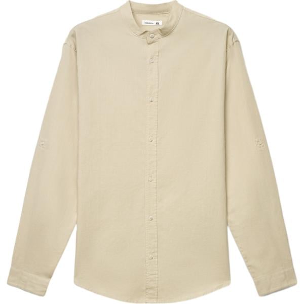 Camicia da uomo in beige sabbia collo coreana a maniche lunghe con bottoni in lino