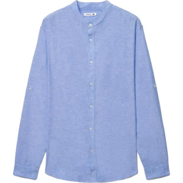 Camicia da uomo in azzurro collo coreana a maniche lunghe con bottoni