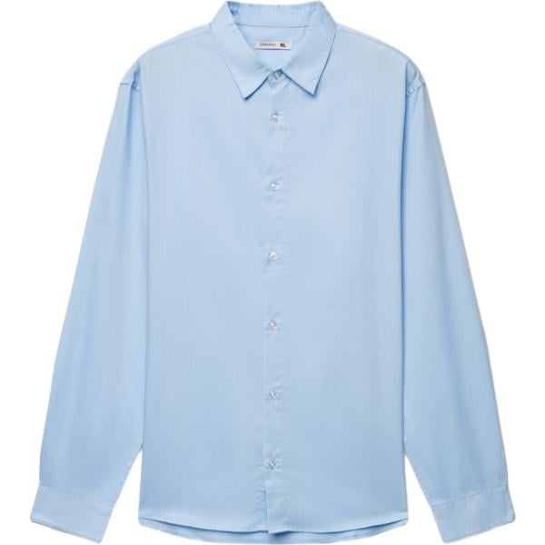 Camicia da uomo in azzurro collo a punta senza tasche a maniche lunghe con bottoni