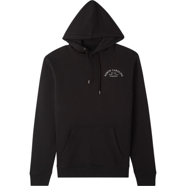 Felpa con cappuccio da uomo in nero pece con stampe collo con cappuccio a maniche lunghe con coulisse in cotone