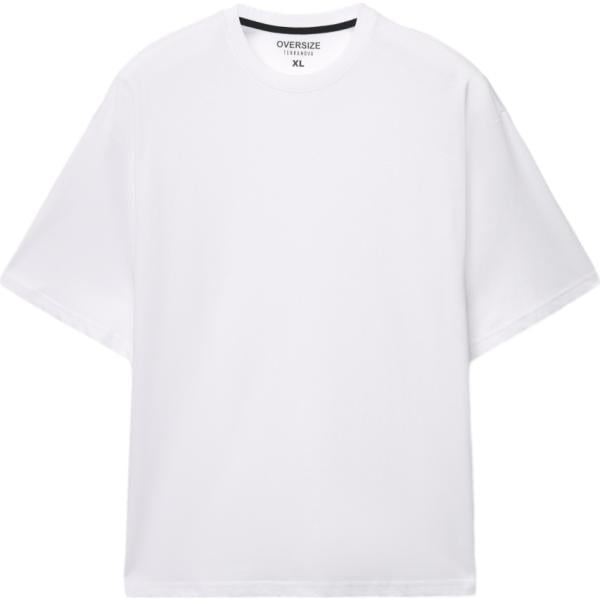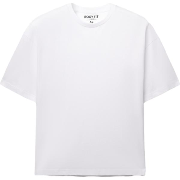 T-shirt da uomo boxy in bianco neve girocollo a maniche corte in cotone