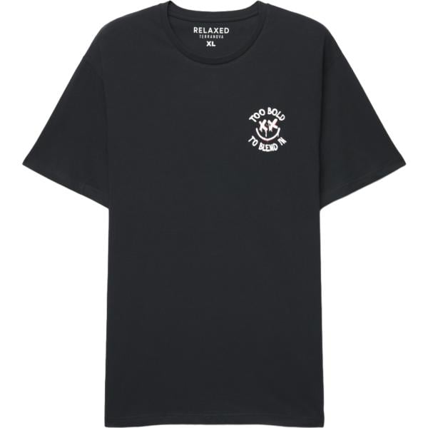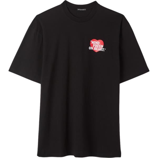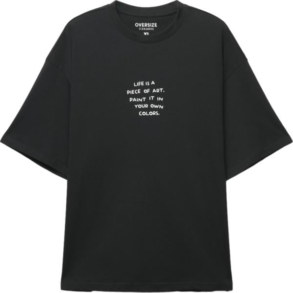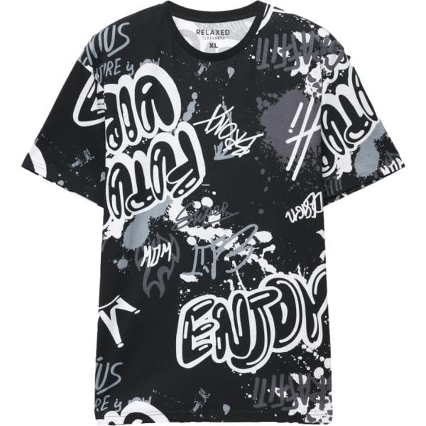 T-shirt da uomo oversize in nero pece con stampe girocollo a maniche corte in cotone