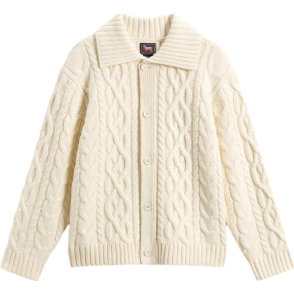 Cardigan da uomo in bianco avorio con bottoni in lana