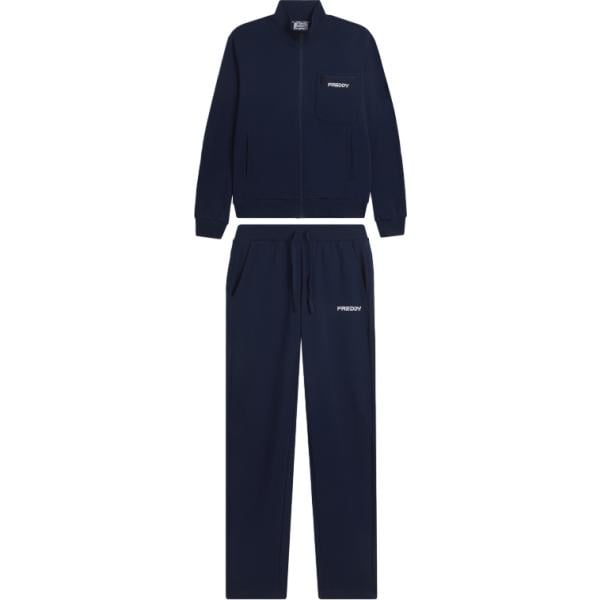 Tuta sportiva da uomo in blu scuro collo alto con zip in cotone