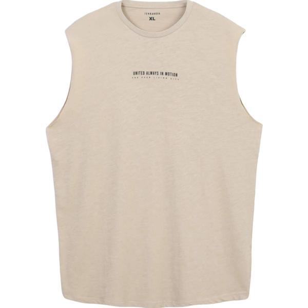 Felpa sportiva da uomo in beige sabbia con stampe collo con cappuccio a maniche lunghe con zip