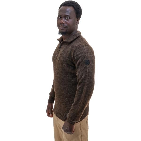 T-shirt sportiva da uomo in marrone scuro collo alto con zip in lana