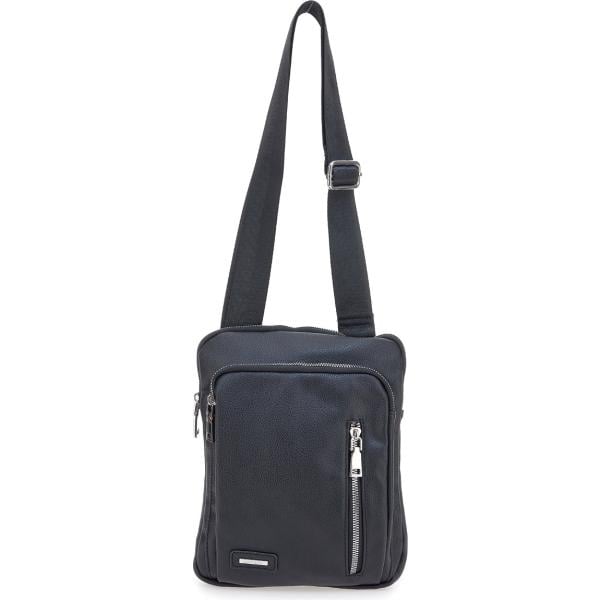 Scarpa sportiva da uomo in nero pece slip on in ecopelle bonprix, T-shirt da uomo in beige sabbia con stampe girocollo a maniche corte in cotone Terranova, Jeans skinny da uomo in blu medio con zip in denim Terranova, Giacca soprabito da uomo in blu scuro effetto strappato a maniche lunghe con bottoni in denim Terranova, Zaino da uomo in grigio scuro in ecopelle Doppelganger.